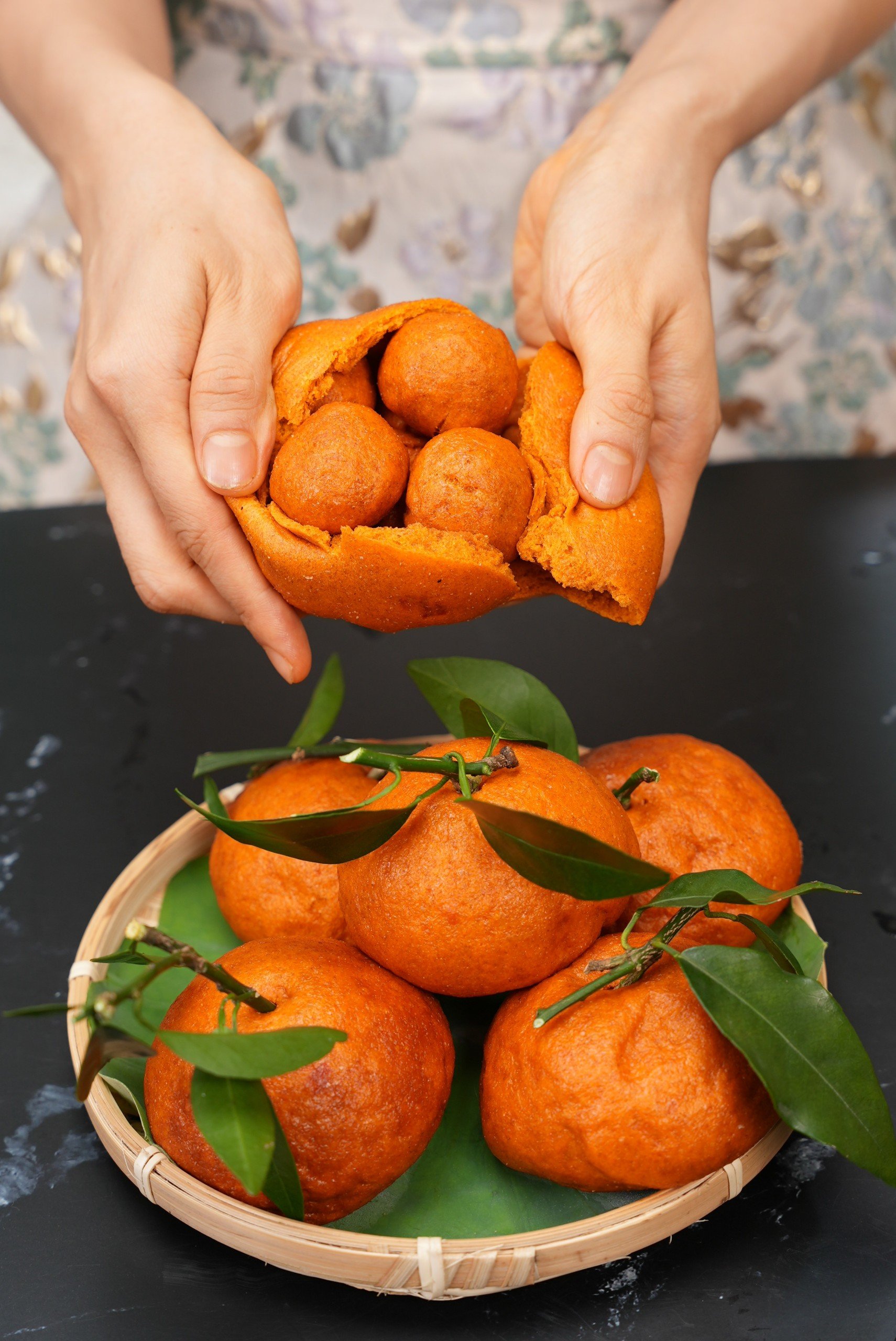 Bánh bao mẹ đẻ bánh bao con đáng yêu vô cùng 😆 Quỳnh còn dùng gấc tạo màu y như quả cam thật đây ạ 🍊