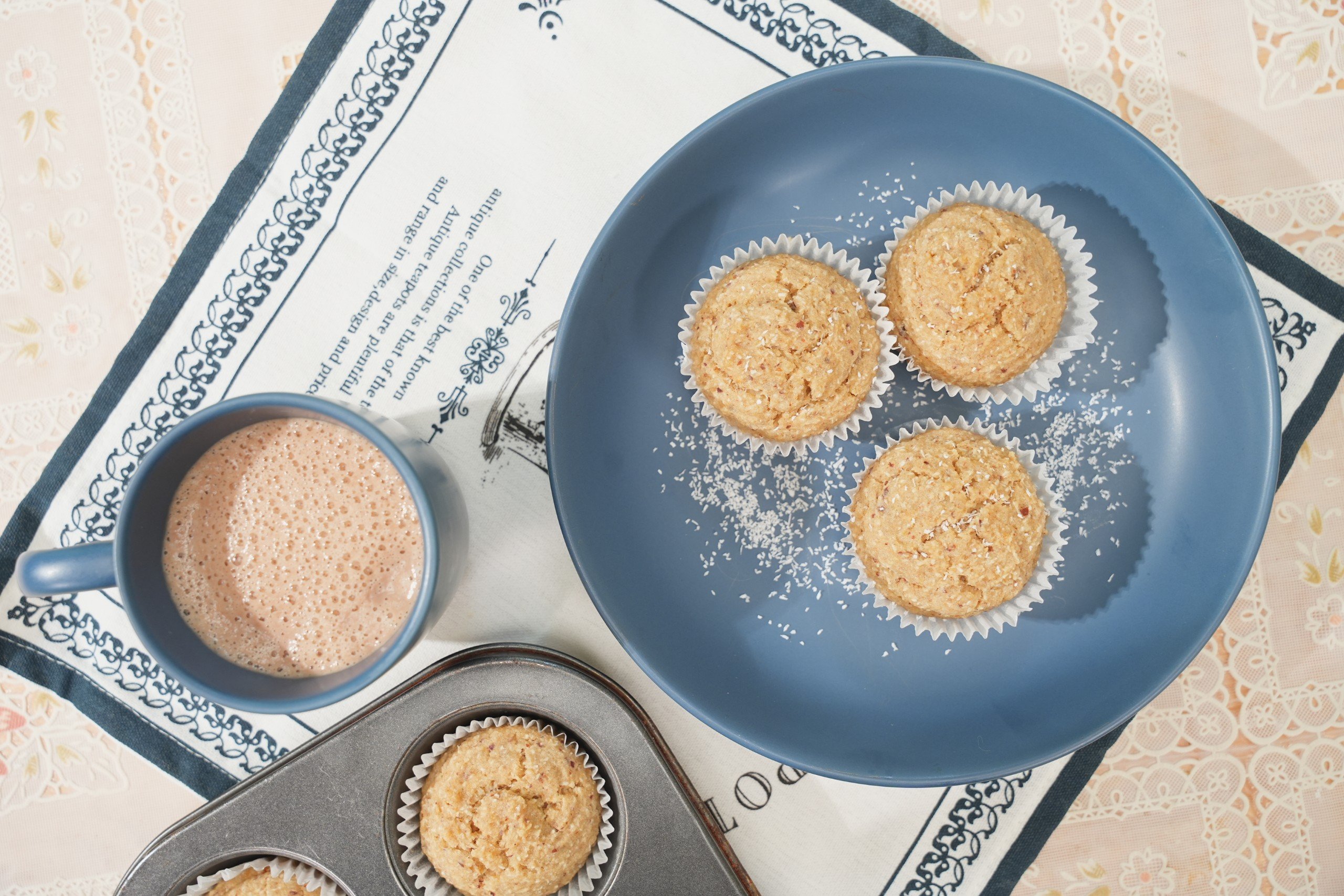 1/2 cup bột mì nguyên cám 1/2 cup bột hạnh nhân (Các bạn có thể mua tại đây) 1/2 cup bột dừa 1 thìa cà phê bột nở 1/4 thìa cà phê muối nở 1/2 cup đường 1 thìa cà phê bột quế |