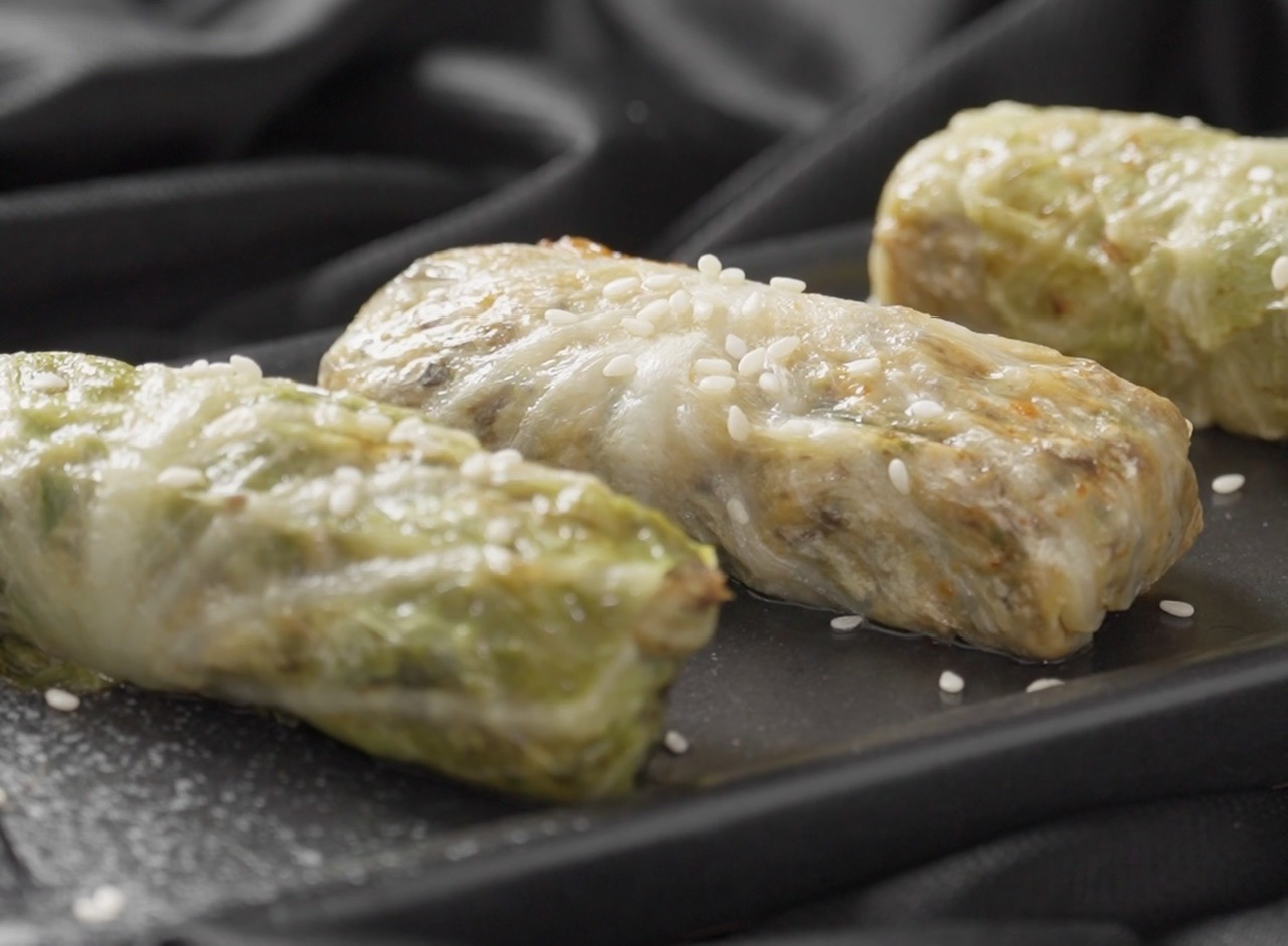 Cách làm: Bắp cải tách lớp lá ngoài, để ngăn đá qua đêm Sau đó rã đông, tách lá và rửa lại, để ráo Xay các nguyên liệu nhân cùng gia vị Trải lá bắp cải, cho nhân vào cuốn tương tự cuốn nem Rán lửa nhỏ cho chín vàng Có thể rắc mè rang và ăn kèm sốt |