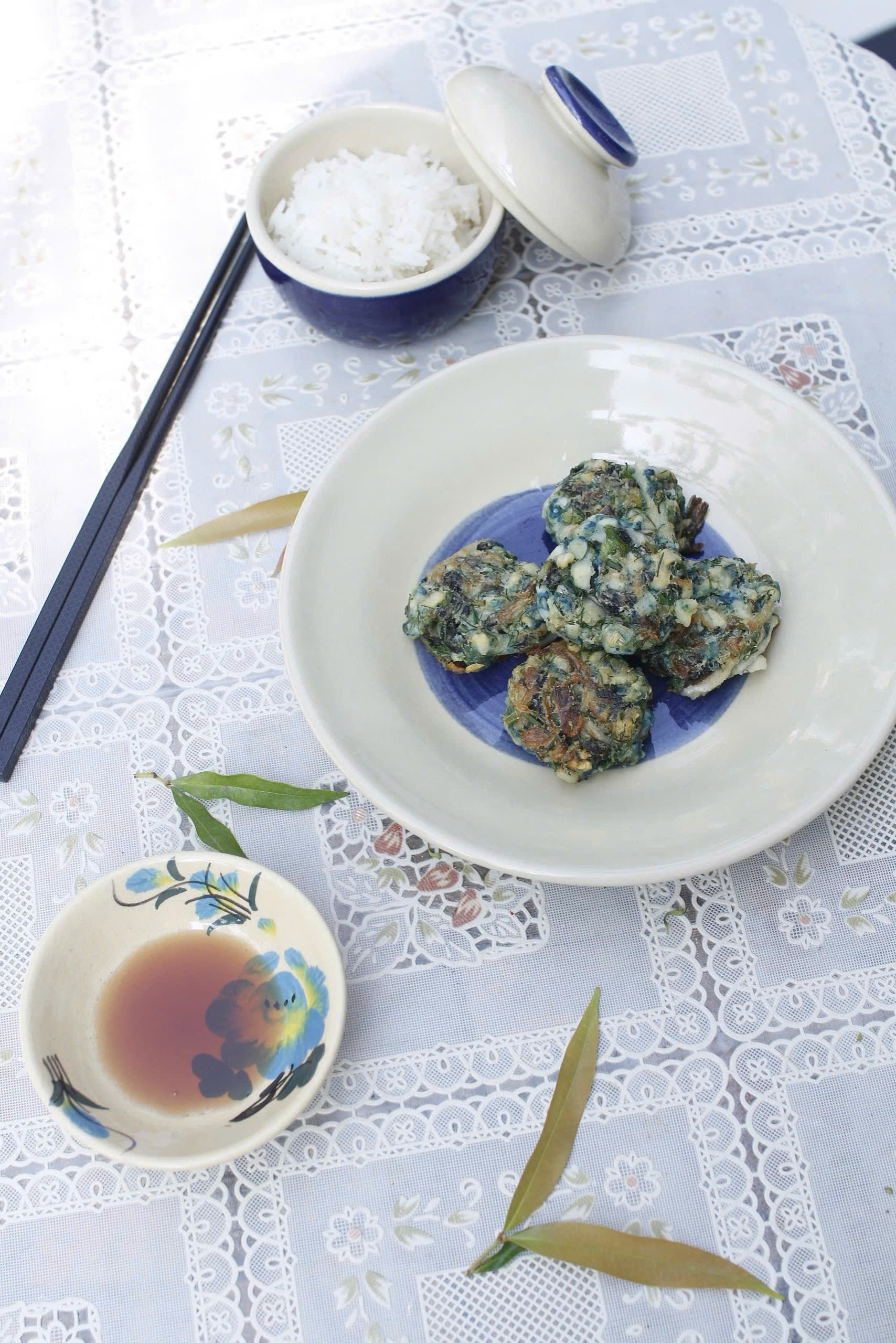 Cách làm: Cho tất cả nguyên liệu vào âu, trộn đều. Đong thành các viên chả (mỗi viên khoảng 1-2 thìa canh) Rán trên chảo cho tới khi vàng giòn đều 2 mặt. |