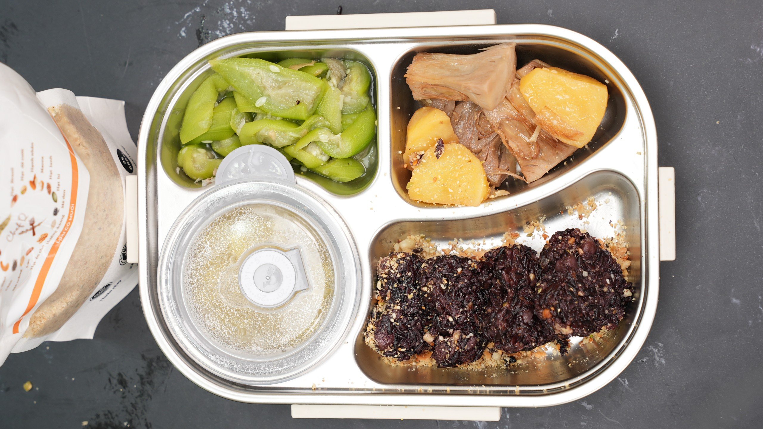 Nguyên liệu: 100gr gạo lứt đen, ngâm (Các bạn có thể mua tại đây) 25gr diêm mạch, ngâm (Các bạn có thể mua tại đây) 25gr đậu lăng, ngâm (Các bạn có thể mua tại đây) 1 thìa canh dầu mè thơm (Các bạn có thể mua tại đây) ½ thìa cà phê hạt nêm (Các bạn có thể mua tại đây) Muối mè từ các loại hạt (Các bạn có thể mua tại đây) Rong biển, cắt thành miếng nhỏ |