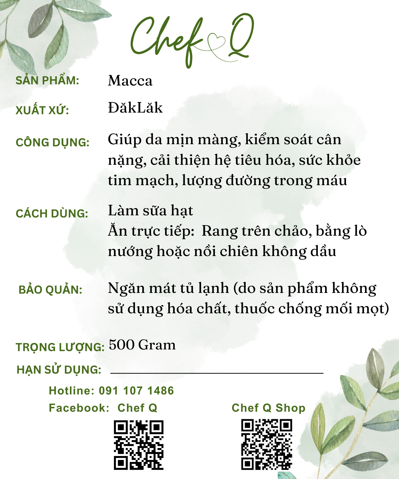 - Hạn sử dụng: 12 tháng (dùng chất lượng tốt nhất trong 6 tháng, Date mới vì sản phẩm được nhập về liên tục)
