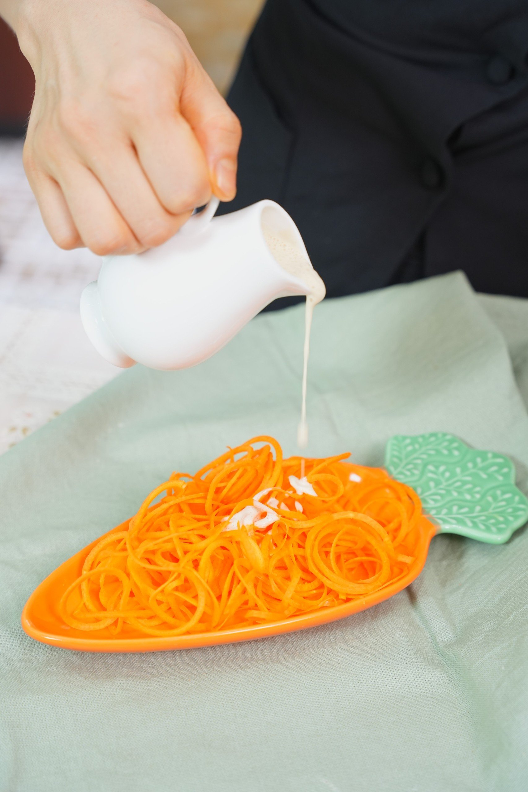 Bào cà rốt thành sợi mì ăn cùng sốt hạt điều béo ngậy 😚 ai mà không ăn được cà rốt thô thì thử ngay nha 😚
