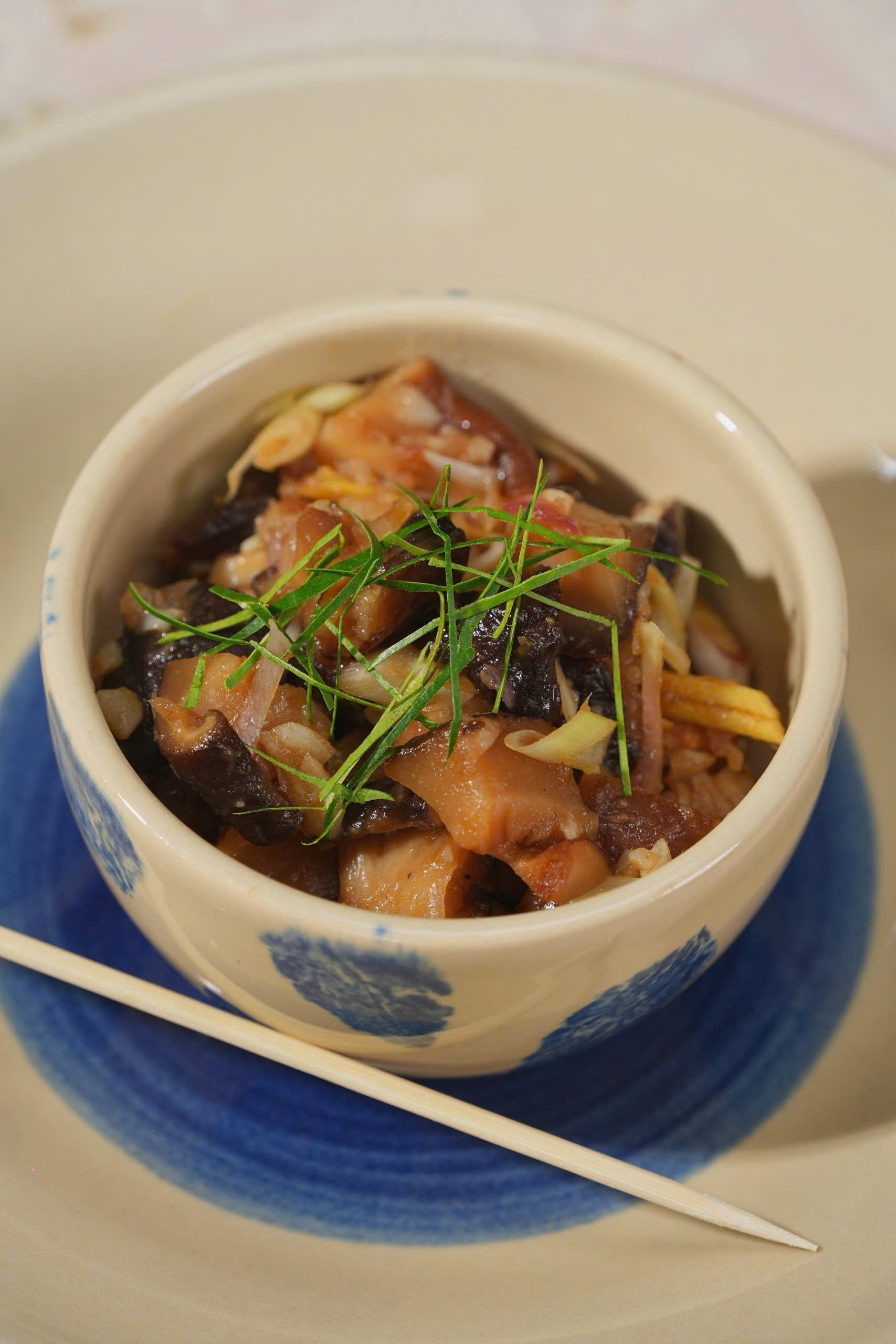 Nguyên liệu: 30gr nấm đông cô khô (khoảng 5 cái cỡ vừa), ngâm 1h 1 củ hành, băm nhỏ 1 củ tỏi, băm nhỏ 1 đoạn gừng, thái chỉ 2 cây sả, đập dập, thái lát 1 nắm lá chanh, thái chỉ