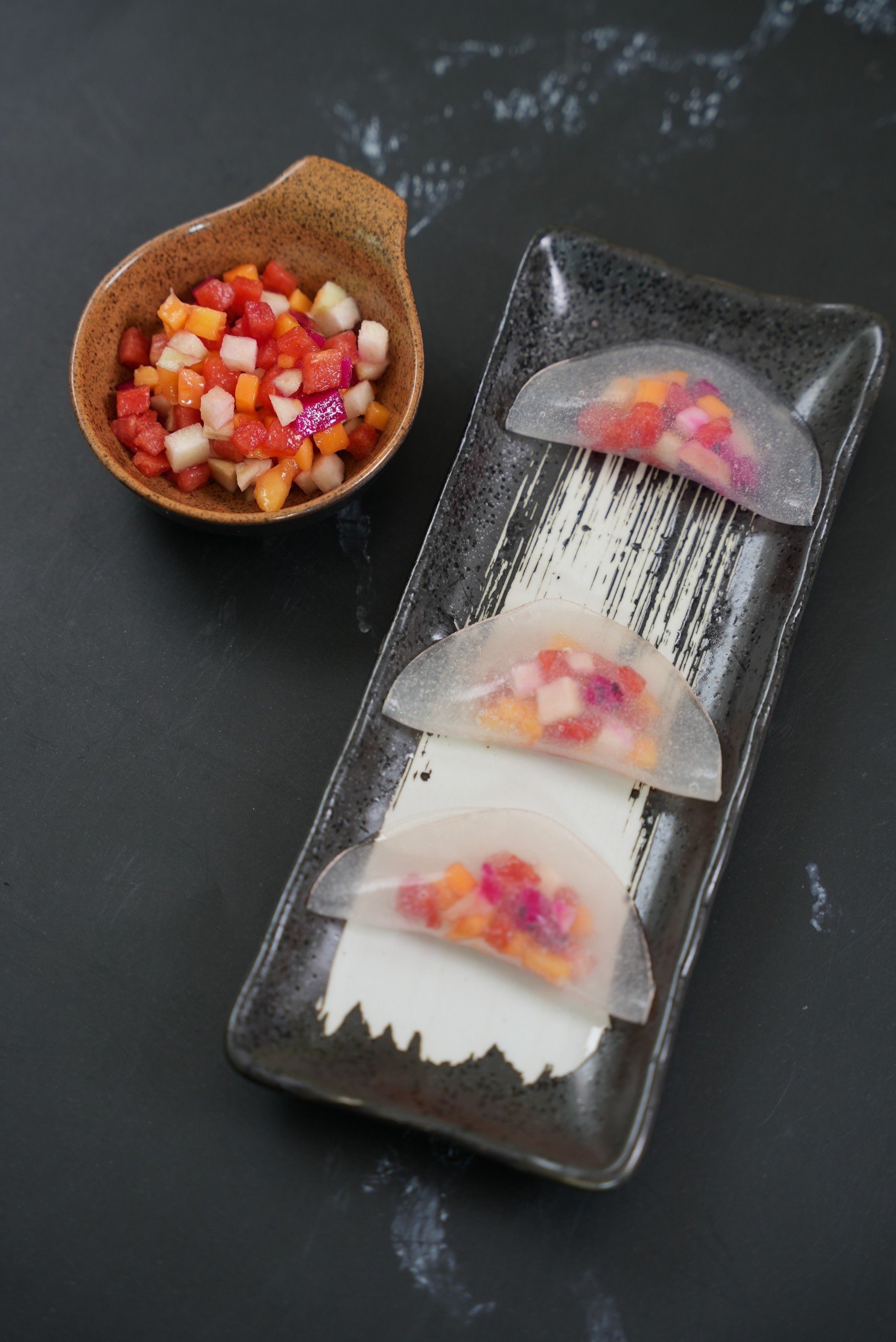 Sủi cảo nhưng nhân là trái cây, vỏ rau câu vị vải thanh mát 😆😆