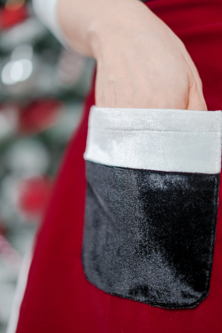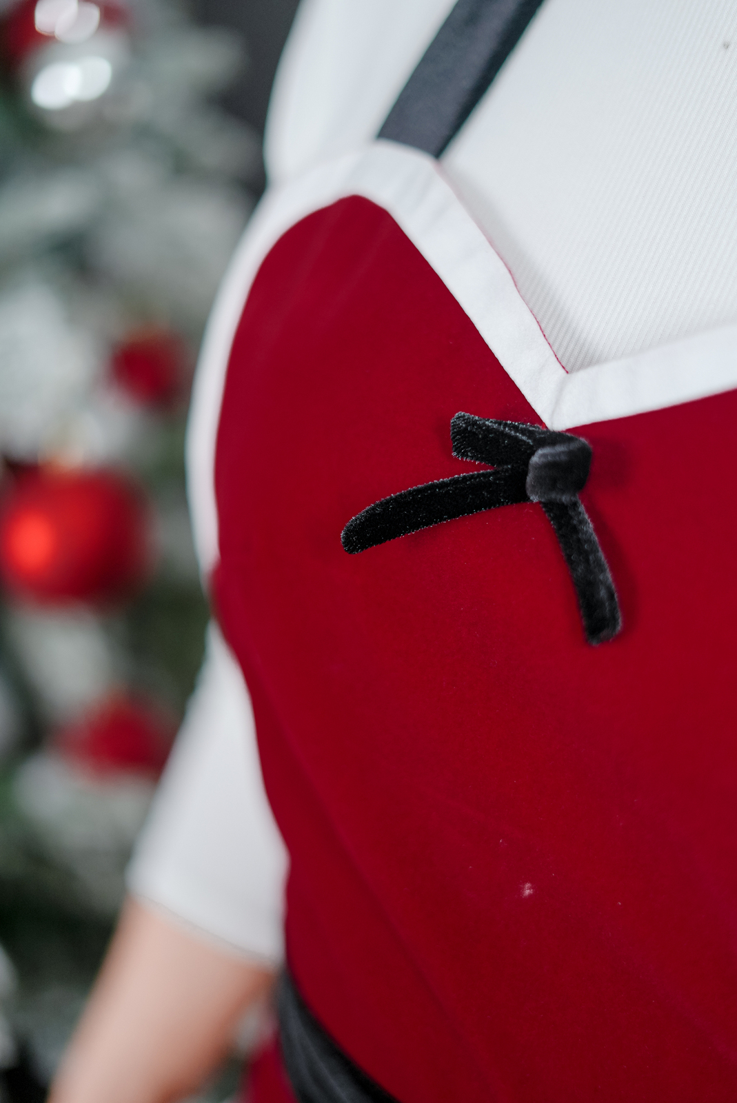 Hòa mình vào không khí ấm áp của mùa Giáng Sinh với tạp dề nhung đỏ, nơi hội tụ của sự quyến rũ, phá cách và nổi bật, như những ánh đèn lung linh trên cây thông Noel.