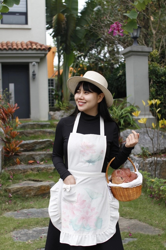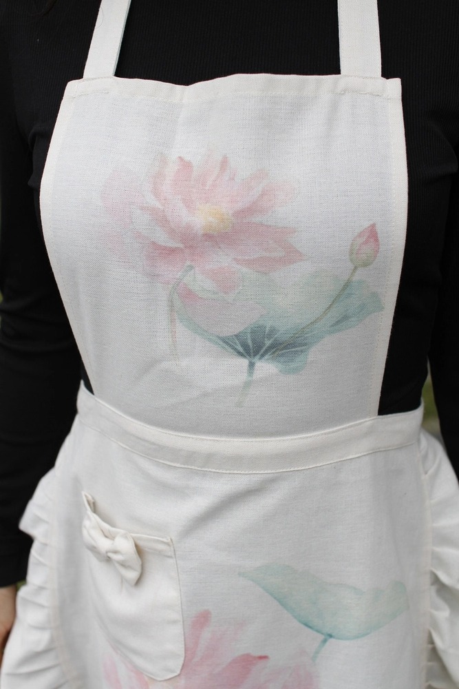Tạp dề Linen Be Hoa Sen Hồng mang vẻ đẹp dịu dàng và thanh thoát, lấy cảm hứng từ hoa sen tinh khiết. Họa tiết sen hồng pastel in nhẹ trên nền vải be tự nhiên, tạo cảm giác thư thái và nhẹ nhàng