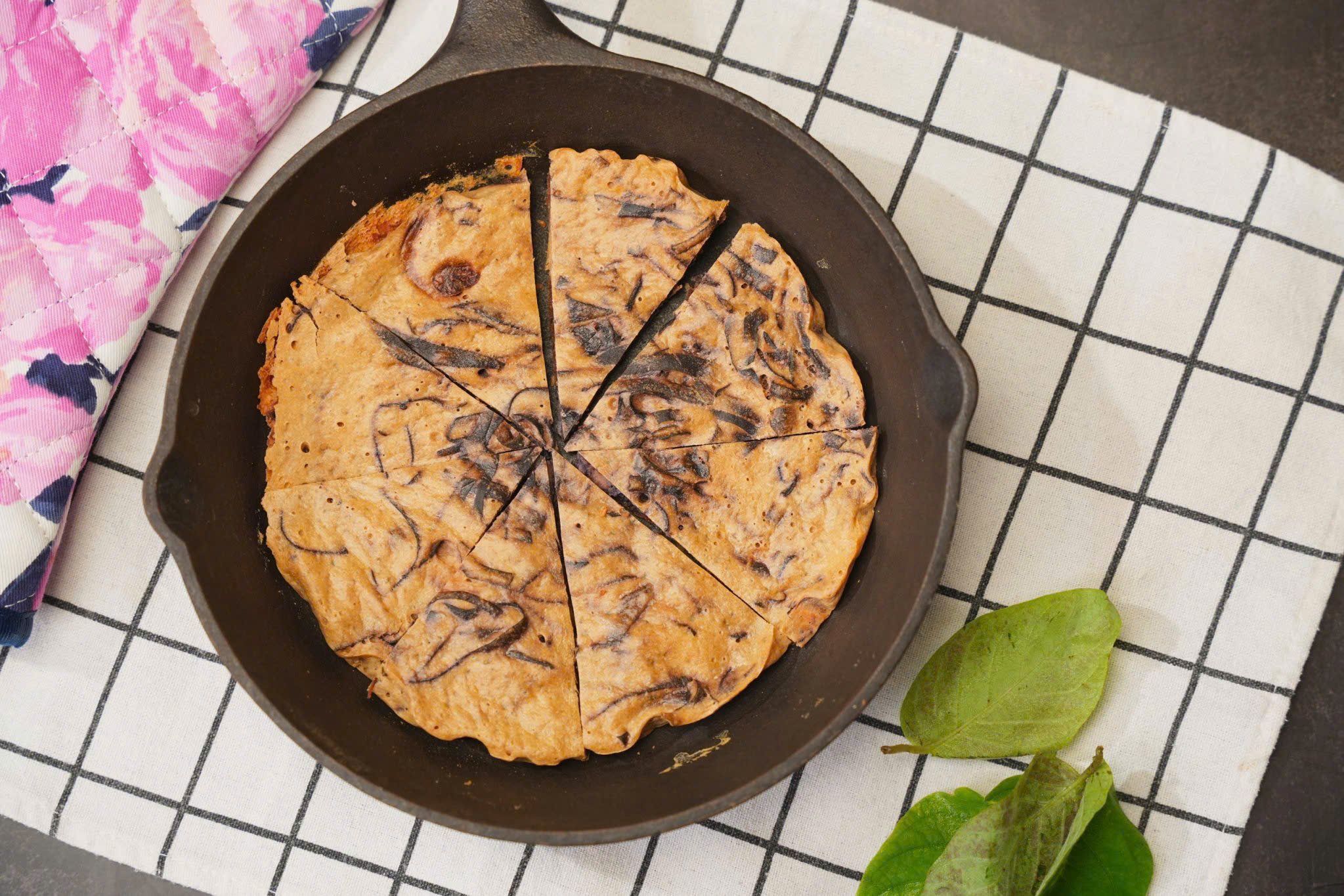 Cho các nguyên lieu vào máy xay, xay mịn. Trừ lá mơ và hành khô. Bắc chảo lên bếp, cho dầu ăn hoặc lót giấy nến. Cho lá mơ, hành khô và hỗn hợp vừa xay vào. Rán tầm 10 - 15 phút rồi lật mặt. Hoặc cho vào lò nướng, bật lò nóng 170 độ trước 15 phút, nướng trong 30 - 40 phút ở 170 độ. |